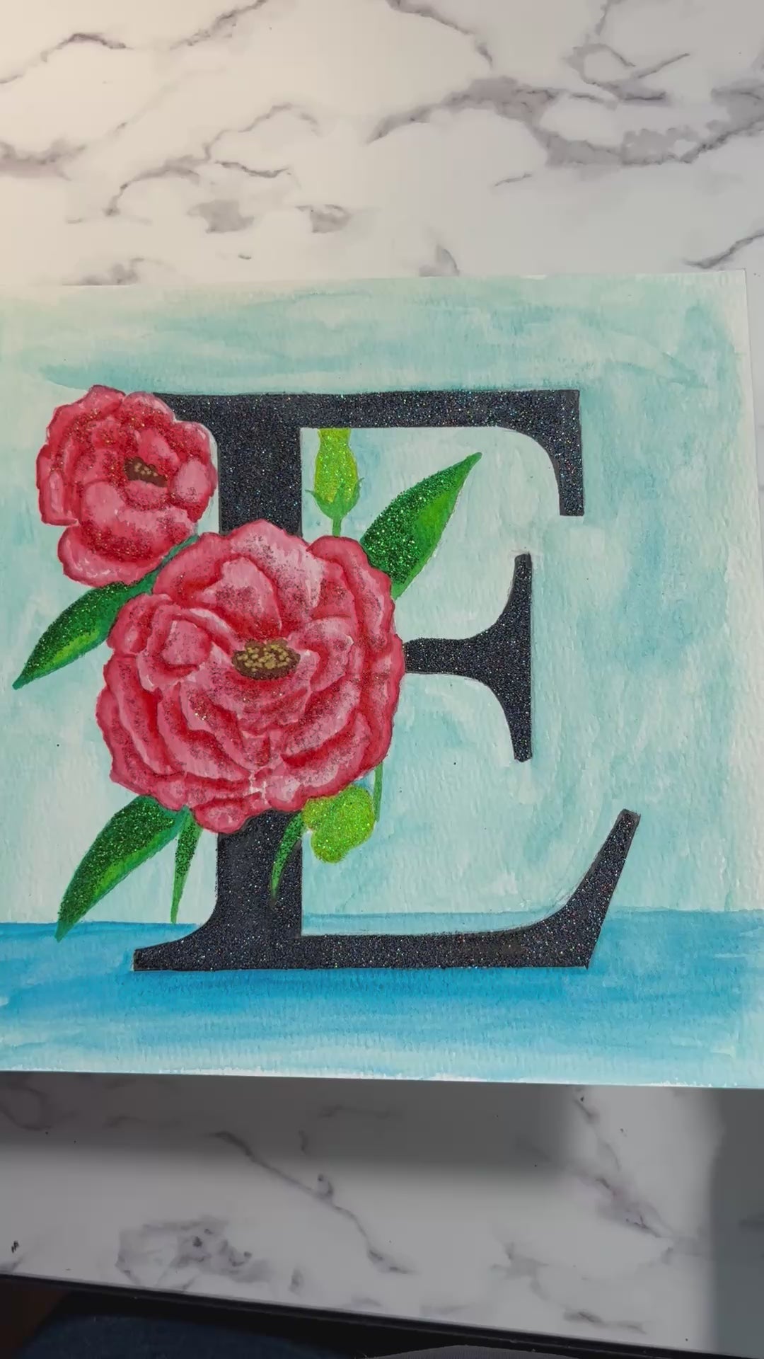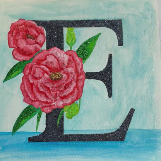 The letter E in all its splendor! Painted with watercolor markers and glitter. A fancy initial letter :)