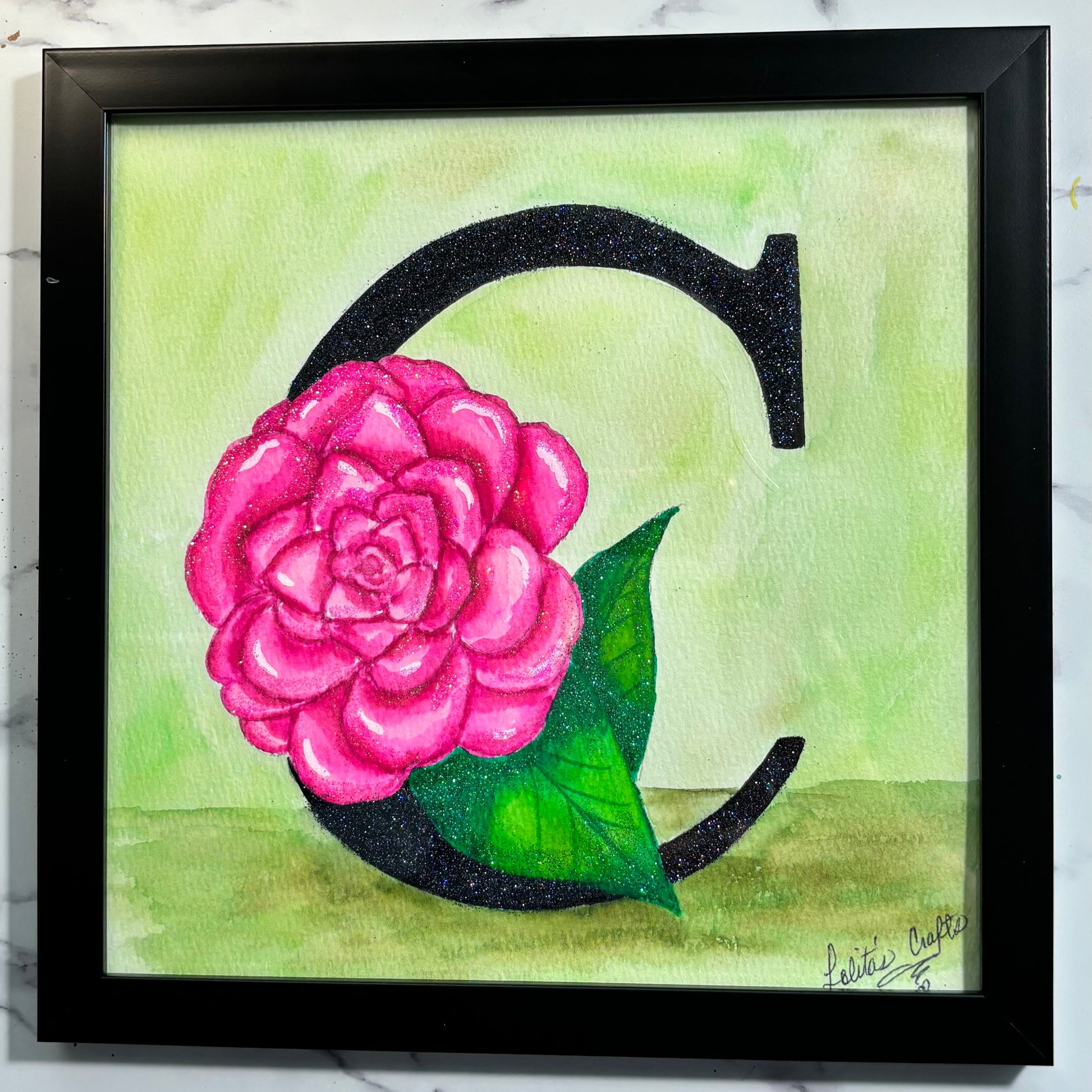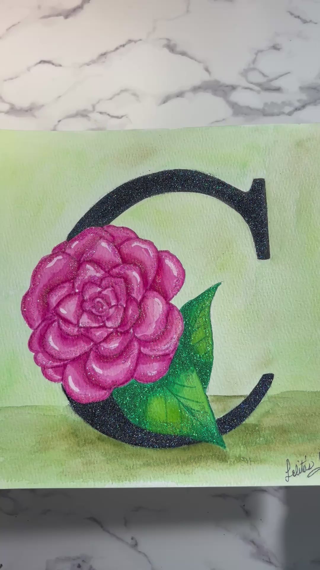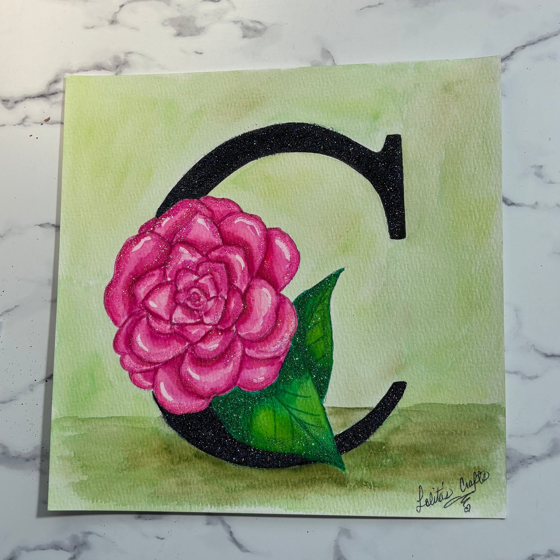 The letter C in all its splendor. Painted with watercolor markers and glitter. A fancy initial letter :)
