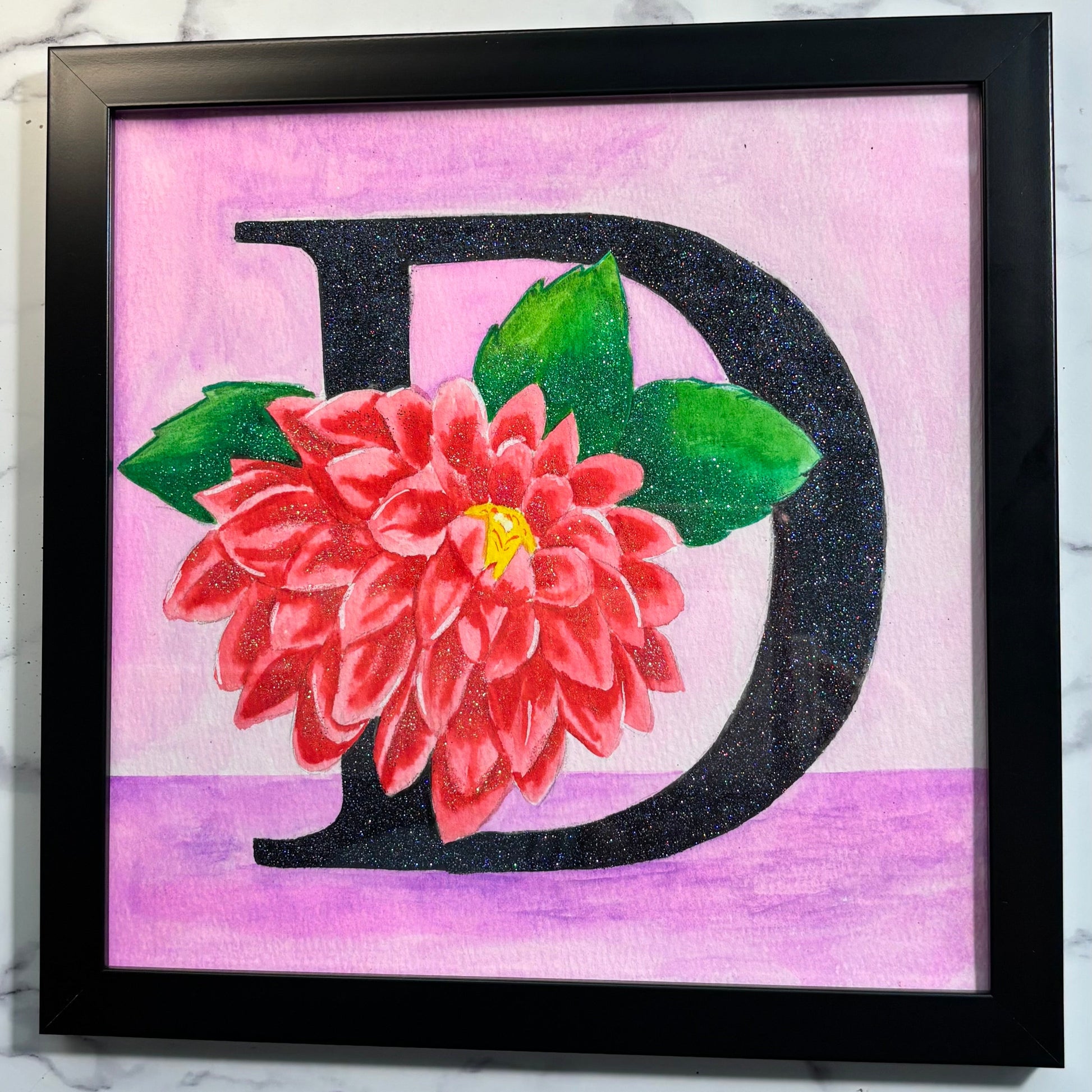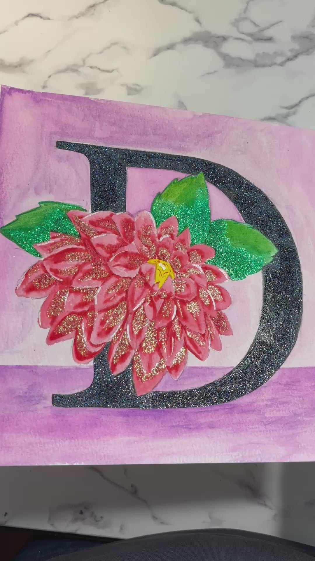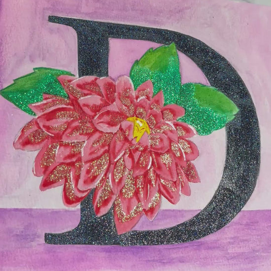 The letter D in all its splendor. Painted using watercolor markers and glitters. A fancy initial letter :)