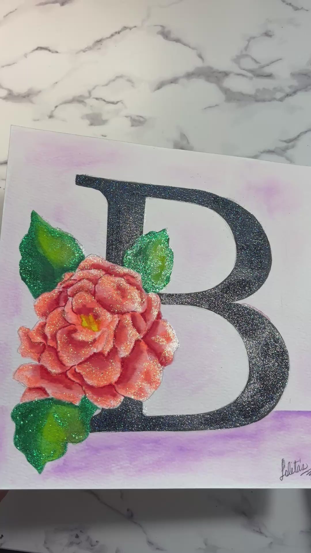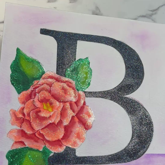 The letter B in all its splendor. Painted using watercolor markers and glitter. A fancy initial letter :)