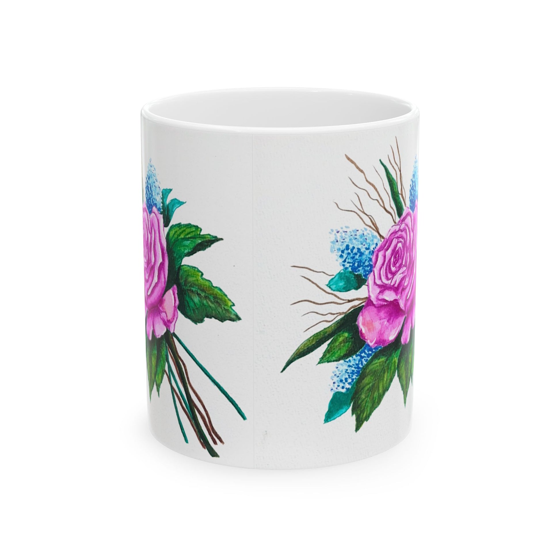 Floral Ceramic Mug, Pink Rose Design, Coffee Cup, Tea Lover Gift, Handmade Mug, Mother's Day Gift, Home Decor