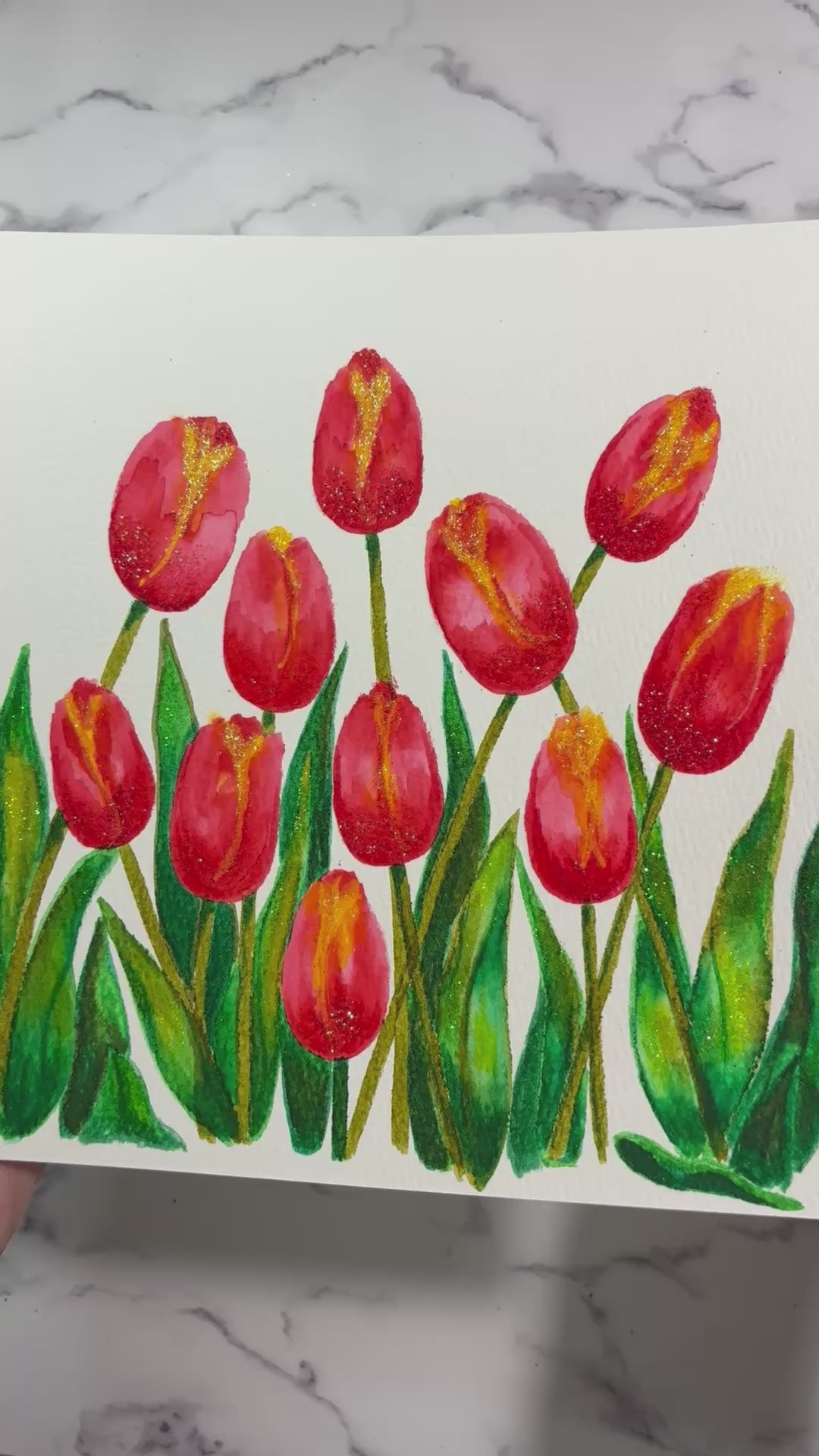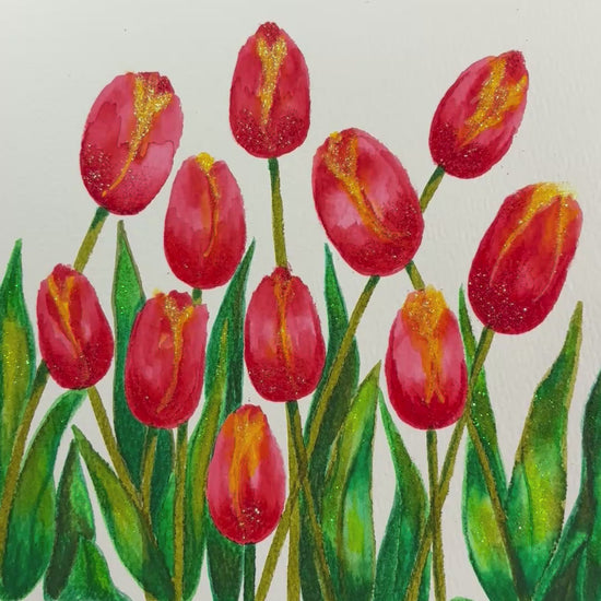 This is a simple yet cute painting that can bring some joy to your home. Size 8"x8". Painted with watercolor markers and glitter.
