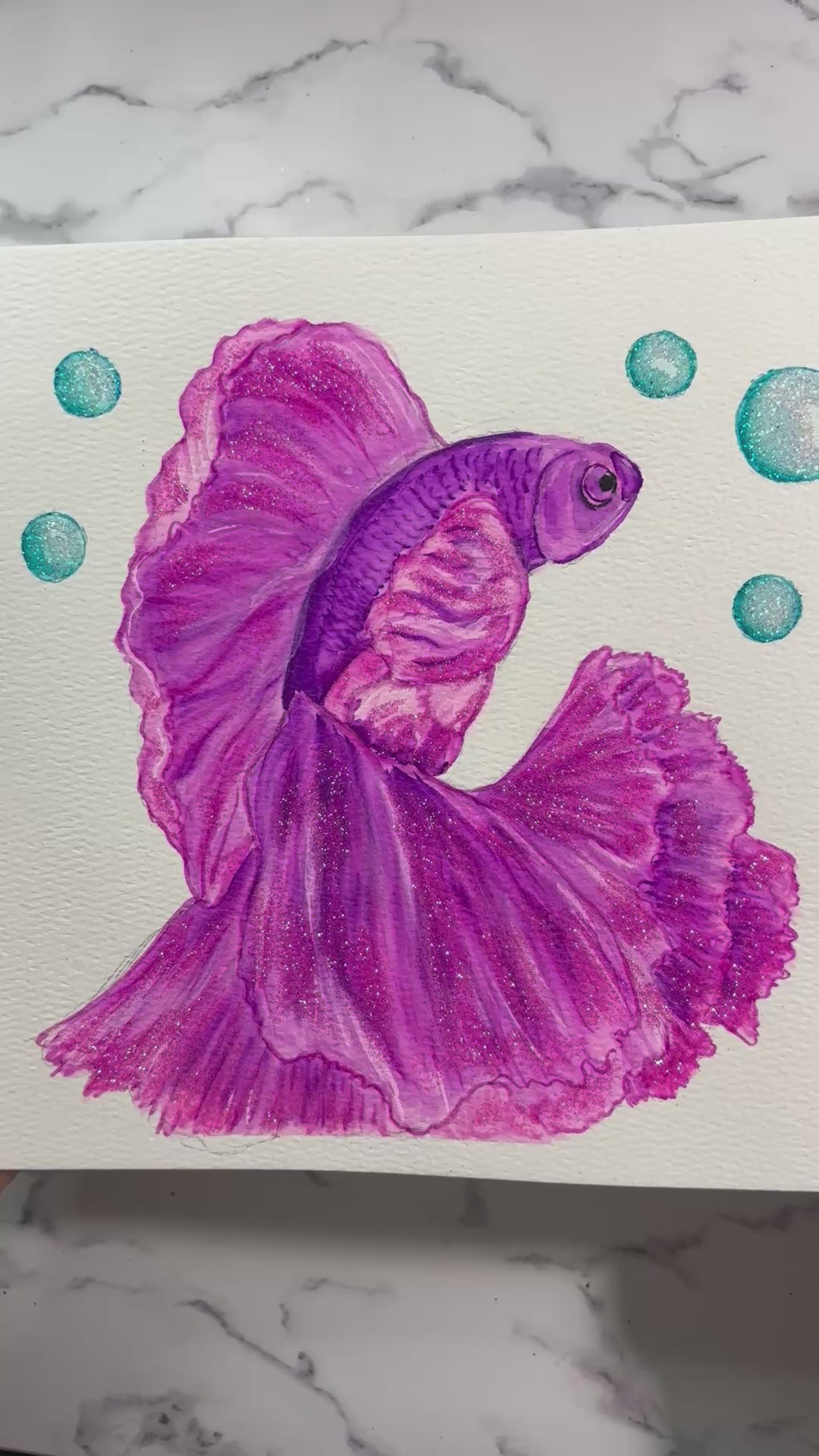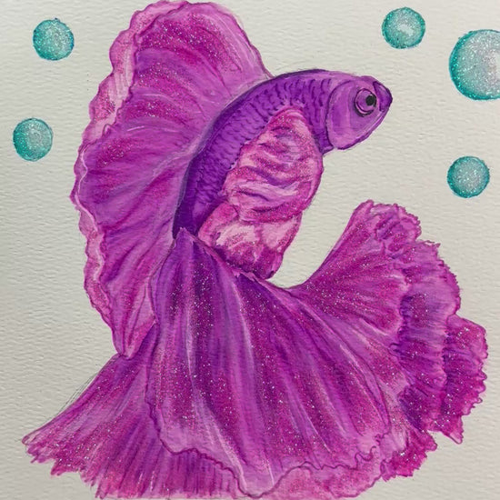 Beautiful and colorful Beta fish. Size 8x8, painted using watercolor markers and glitter.